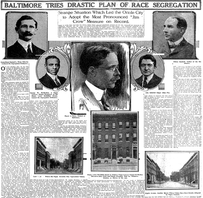 In 1910, Baltimore passed the nation’s first residential segregation ordinance, prohibiting Black residents from moving into majority-white blocks (and vice versa). Although overturned by Buchanan v. Warley in 1917, racial covenants and real estate practices continued to enforce segregation.